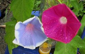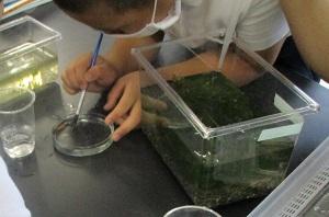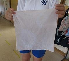 絵の具でのいろいろな技法を試し、それで作った模様をTシャツのように飾っていました。