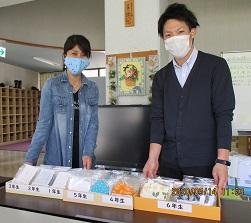 公民館の中川さんをはじめ、地域のみなさんが一生懸命作ってくださった189人分のマスクです。