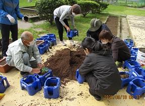2年生の植木鉢に、先生方にお手伝いをしてもらって植えることにしました。