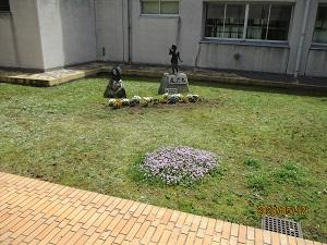 あがたっ子のみなさん、きれいになった中庭が皆さんを待っていますよ