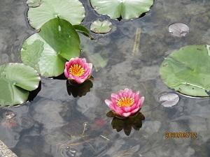 ビオトープのスイレンも花開き、この写真ではちょっと見えませんがメダカたちも元気です。