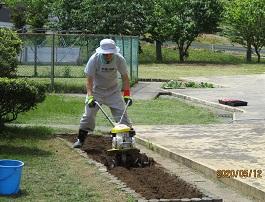 今日も、2年生の先生方と一緒に、畑を耕運機で耕して下さっていました。