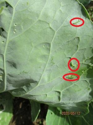 3年生の畑のキャベツの裏には、アオムシがいっぱいです