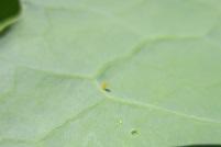 お母さんチョウが産んですぐの卵は、もう少し白っぽい色ですが、