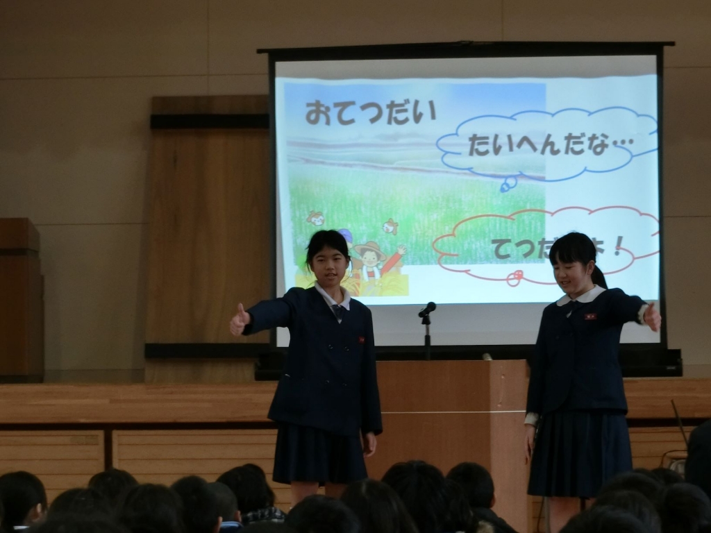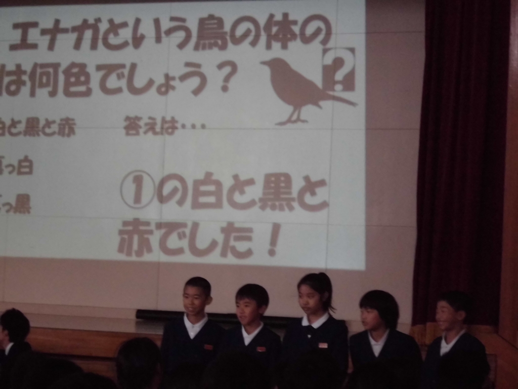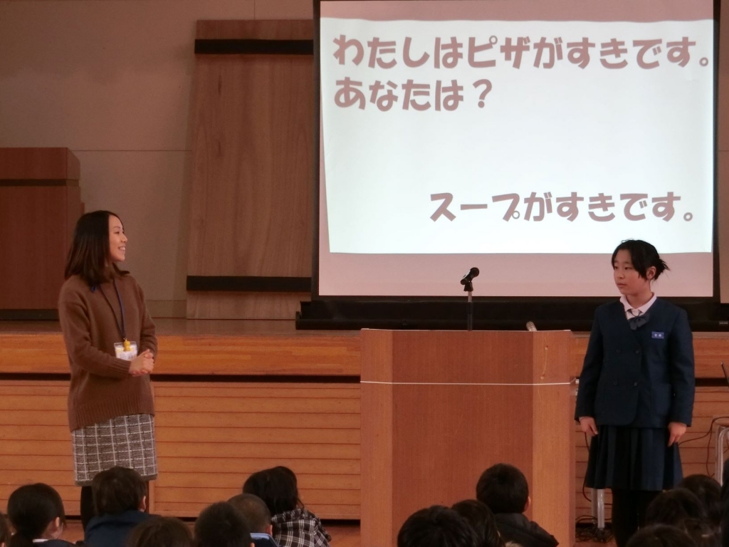 見ていた児童に感想を聴くと、「たくさんの英語を言っていてびっくりしました」「動きを入れながら英語を話していてすごいと思いました」「今までたくさん練習をしてきたんだなと思いました」と話していました。