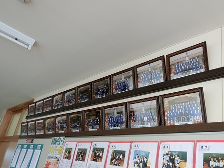 また、図書室・職員室前廊下には今までの卒業生の卒業写真が飾られています。