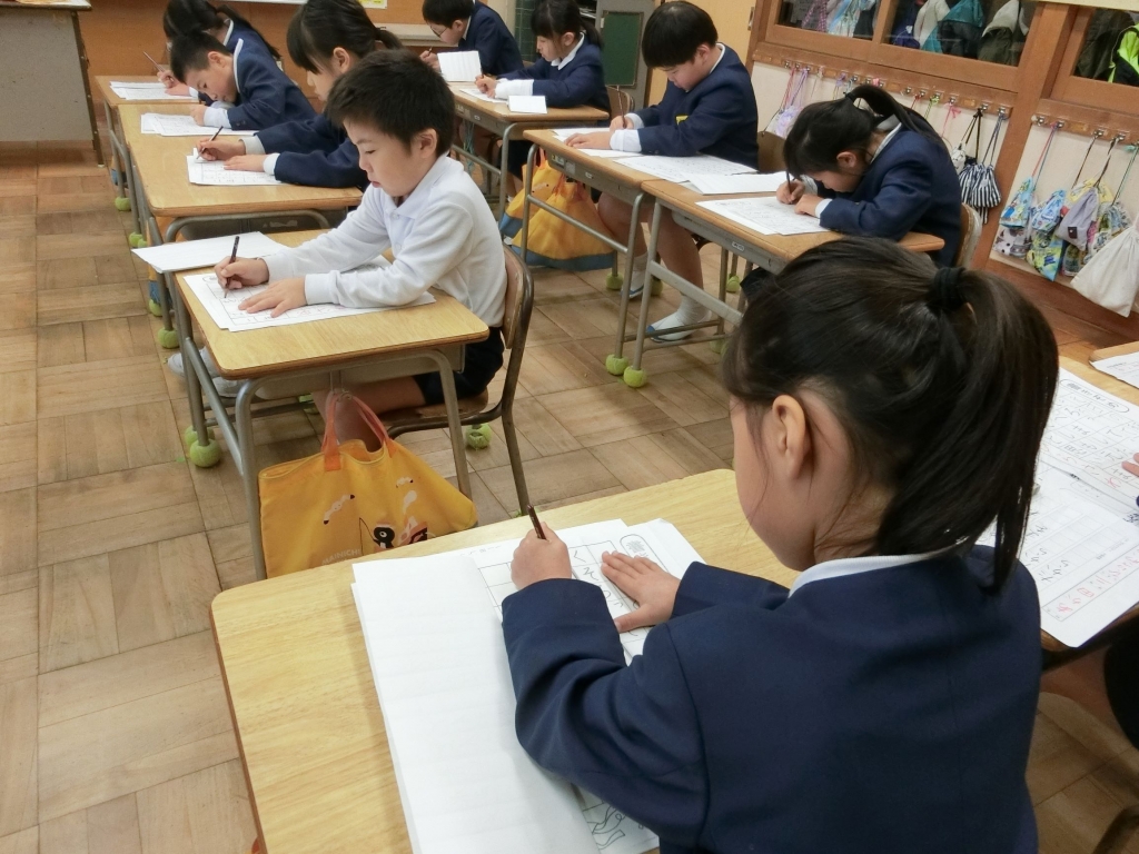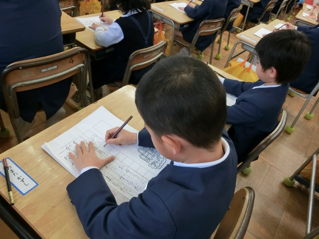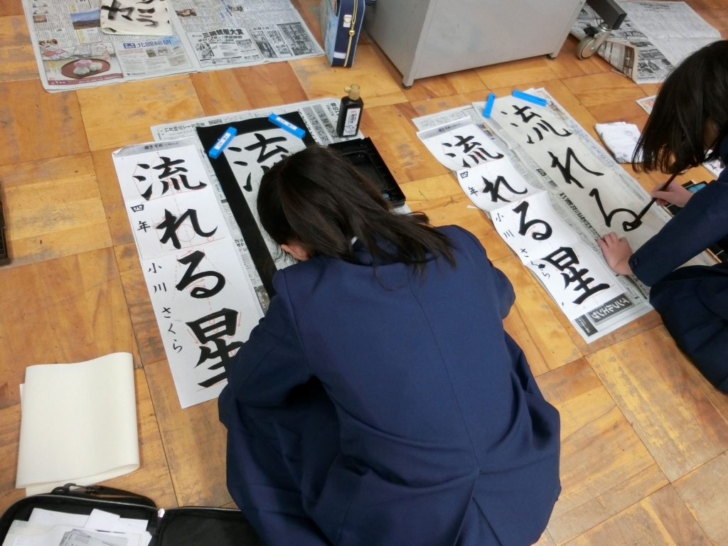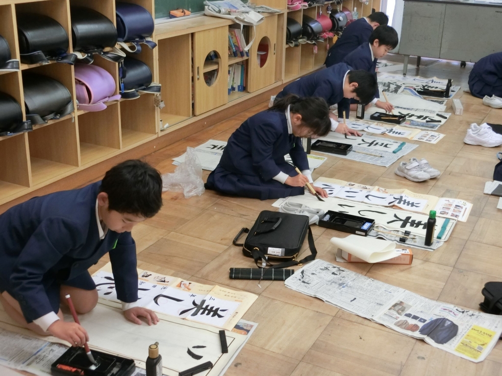 子どもたちは、今まで授業や冬休みに練習してきた成果を出そうと一画一画を大切に集中して書いていました。