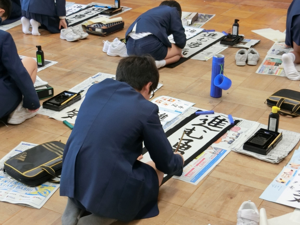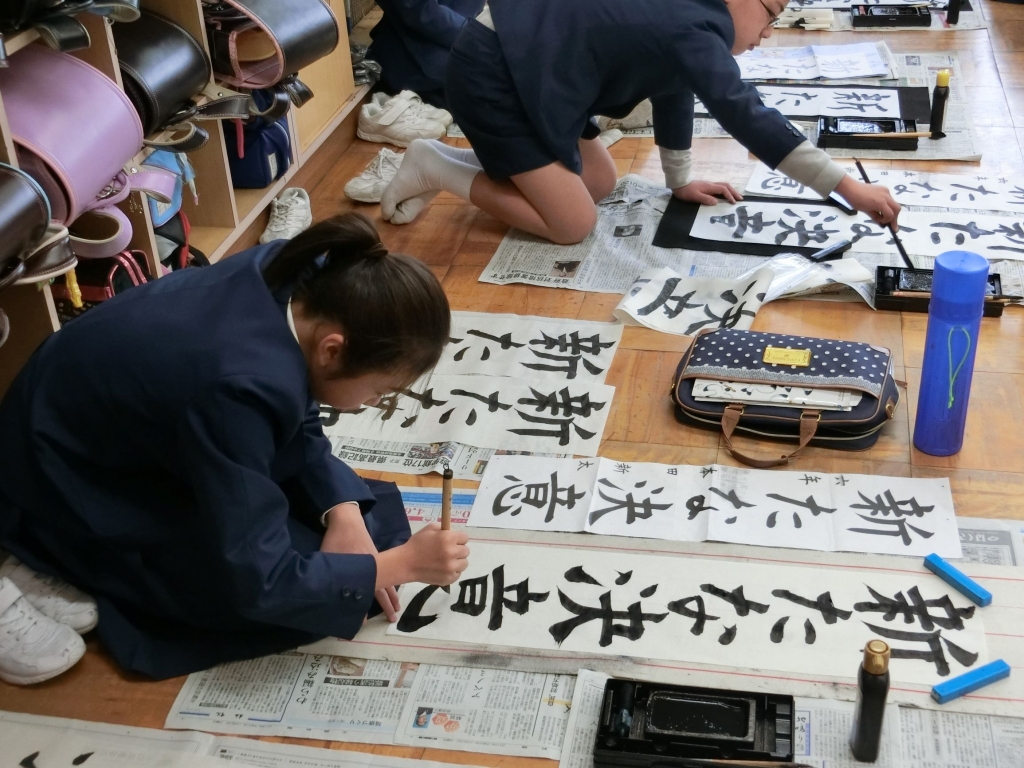 1月8日(火)3学期がスタートし、3時間目に書き初め大会がありました。