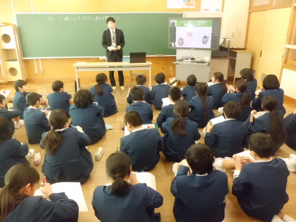 1月18日(金)6年生の社会の時間に町税務課職員を迎えて、租税教室がありました。