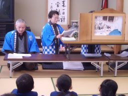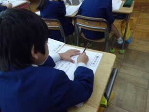 3年生総合の時間に校区にある旧河合谷小学校の新校舎が建築されるまでの話を紙芝居で聞きました。村中の人が禁酒をして、子どもたちのための新校舎を建築するお金を貯めた、という話でした。子どもたちは、「人のために我慢をするってすごい」「たくさんのお金をみんなで貯めてすごい」と話していました。子どもたちは、地域の人々の思いについて知り、自分たちもこれからこの思いを伝えていきたいと語っていました。