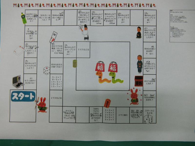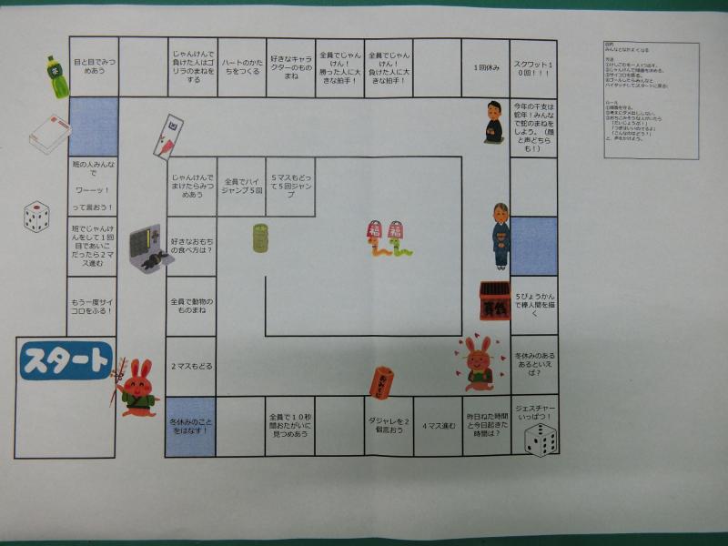 3学期がスタートし、久しぶりに友達にあえたこともあり、今週は多くの学年がエンカウンターを行っていました。今回使用したゲームはすごろくです。このすごろくは、人間関係づくりのために作られているものです。