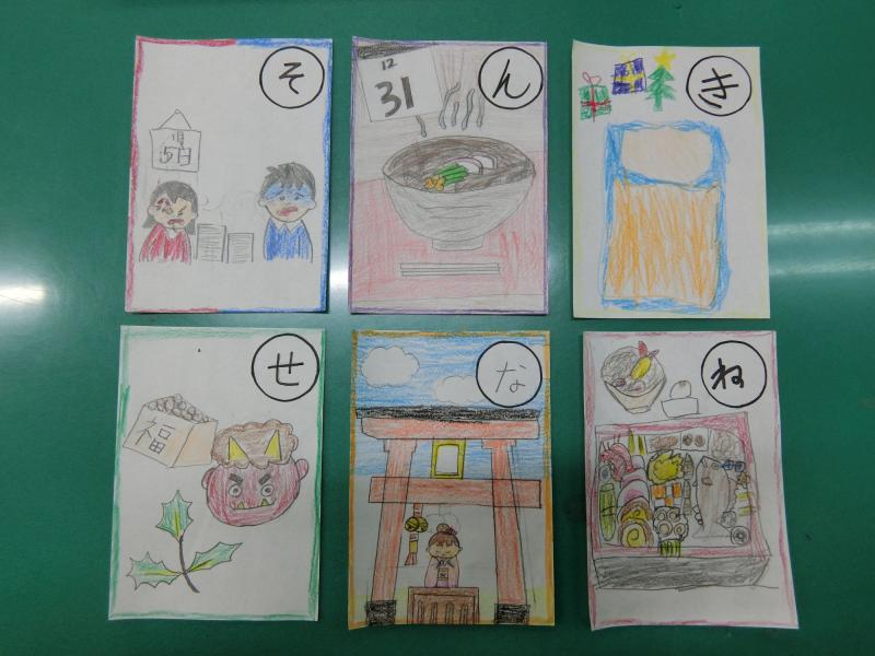 4年生が国語科「冬の楽しみ」の学習で、季節の言葉を入れてかるたを作りました。3学期が始まって間もない頃だったので、お正月にちなんだものも多く見られました。みんなとても楽しそうに、そして工夫を凝らして作っていました。どれもとっても素敵に仕上がりました!