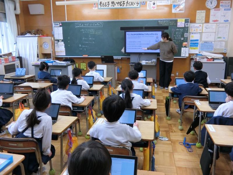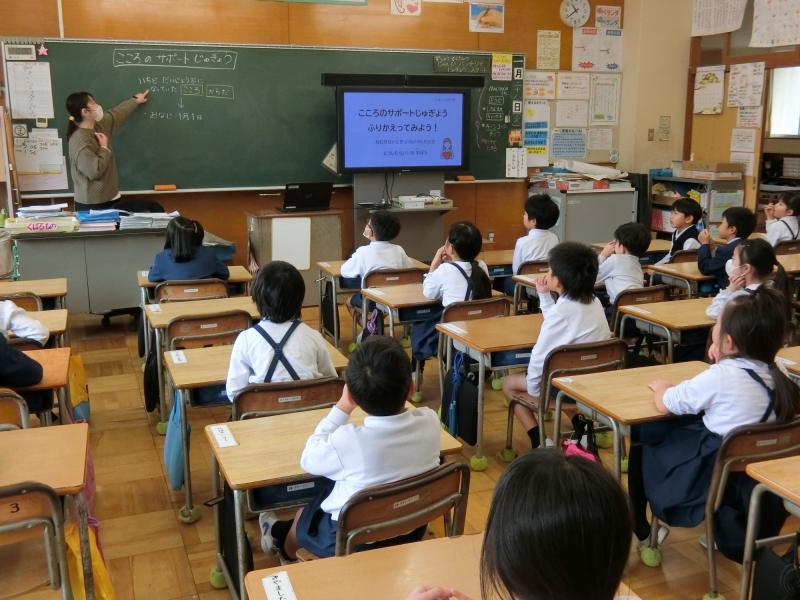 1月に入り、全学年でこころのサポート授業が行われました。能登半島地震から1年が経ちましたが、まだまだ不安を抱えている子どもたちや、地震が起きた時と同じ時期を迎えてさらに強い不安を感じている子どもたちがいることと思います。不安を感じることは悪いことではないこと、そして、どんな方法で不安な気持ちを和らげるとよいか、ということを、スクールカウンセラーの先生がスライドを交えながら子どもたちに教えてくださいました。どの学年も、スクールカウンセラーの先生のお話を真剣に聞いていました。この授業で学んだことが、実際の生活場面で思い出され、少しでもつらい気持ちが楽になればいいなと思います。