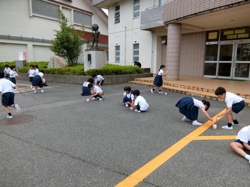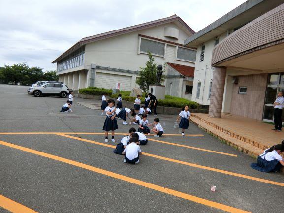 1年生が,生活科「なつとなかよし」の学習で,シャボン玉を行いました。ストローで吹いたり,モールのわっかを利用したりして,シャボン玉を作っていました。みんなだんだんコツをつかんできて,とても大きいシャボン玉も作れるようになりました。「もっとやりたい~!」という声があちこちから聞かれていました。みんなで仲良く楽しく,学習できました。