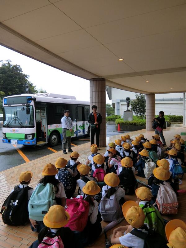 10月3日(木)に,2年生のみんなが,町バスの乗車体験を行いました。最初に,役場の方からバスの乗り方の説明を受けました。手を挙げるとバスが停まってくれること,バスに乗るときに整理券をとること,整理券の番号の意味,お金の払い方など,役場の方からの詳しい説明を,みんなとても真剣に聞いていました。その後,実際に一人一人整理券をとってバスに乗ってみました。そして,河合谷までみんなで出かけてきました。