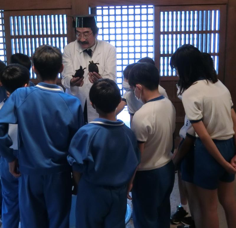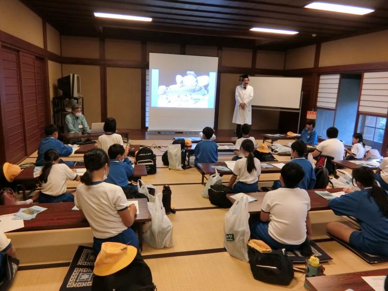 10月4日(金),5年生のみんなが,総合的な学習の一環として『水辺の学校』に参加するために,湖南水辺公園へ行きました。最初に『博士』から河北潟に生息する生き物についての話を聞き,実際にカニやカメなどと触れ合いました。また,水道水と河北潟の水の濁りを比較してみたり,グループで水質実験をしたりしました。あいにくの雨で実際に河北潟に行くことはできませんでしたが,室内でもたくさんのことが学べました。身近にある河北潟への興味・関心が高くなったのではないかと思います。
