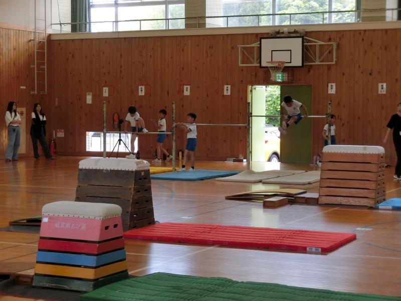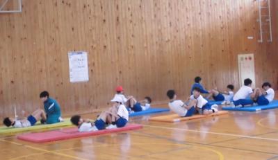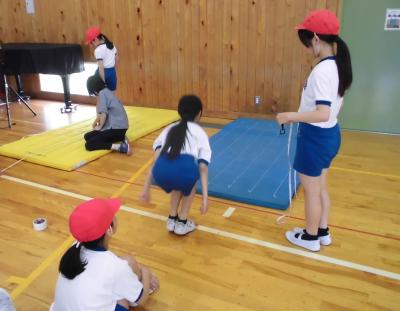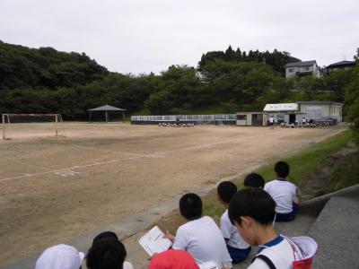 6月13日には、残り4種目のソフトボール投げ、立ち幅跳び、上体起こし、反復横跳びを、4~6年生合同で各学年男女別グループをつくって各コーナーを回りました。