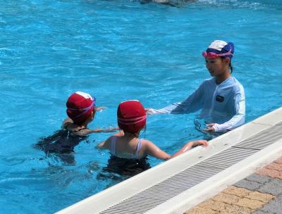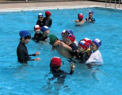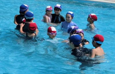 1年生にとって、小学校の25mプールは大きくて、深さもあり、とても怖いようです。