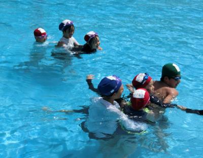 6月19日、1年生と6年生が一緒にプールに入りました。