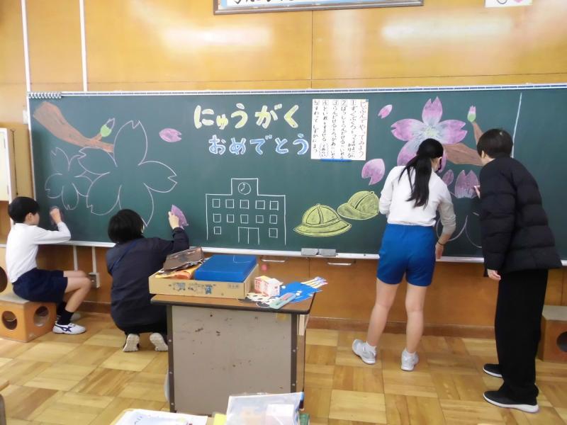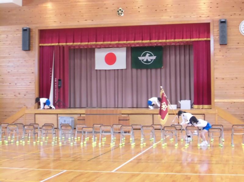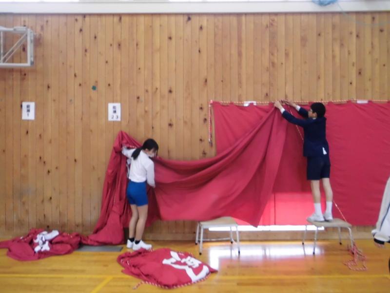 4月4日(金)、新6年生が入学式準備のために登校してくれました。幔幕を張ったり、椅子をたくさん並べたり、国旗や町旗を掲げたり、、、大変な会場づくりをてきぱき行ってくれました。また、玄関や教室等の掃除もすみずみまでしてくれました。1年生を迎える準備を進んで行っている様子は、さすが最上級生!とても頼もしい姿でした。