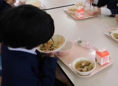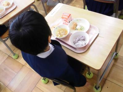 調理員さんたちが一生懸命作ってくださった給食を、なるべく残さず、おいしくいただきます。
