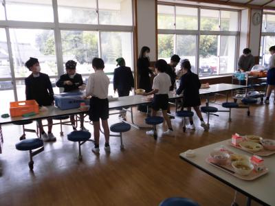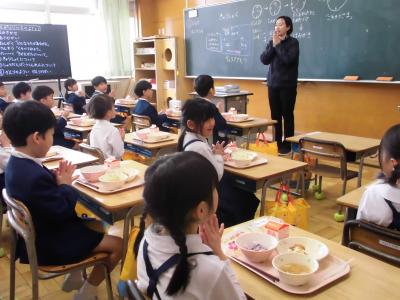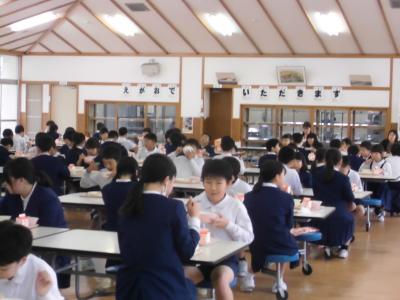 今年は3年生~6年生までがランチルームで、1年生と2年生は教室で給食を食べることになりました。