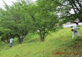 運動場南側斜面の草刈りを実施しました。