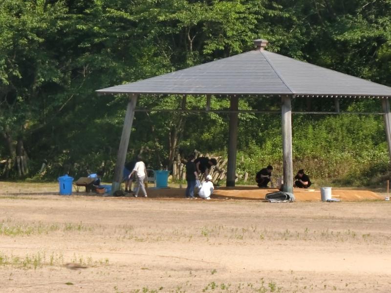 また、この日、育成部の方々による土俵直しも行われました。夏休みに開催される津幡町子ども相撲大会に向けて、もうすぐ練習が始まります。そのために、学校の土俵を整備してくださいました。非常に暑い日となり、厳しい作業となりましたが、みなさまのおかげで、子どもたちが安心して練習に取り組める土俵となりました。