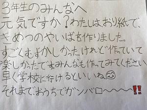 さっそくメッセージを届けてくれた子どもたちがいますので,紹介します。