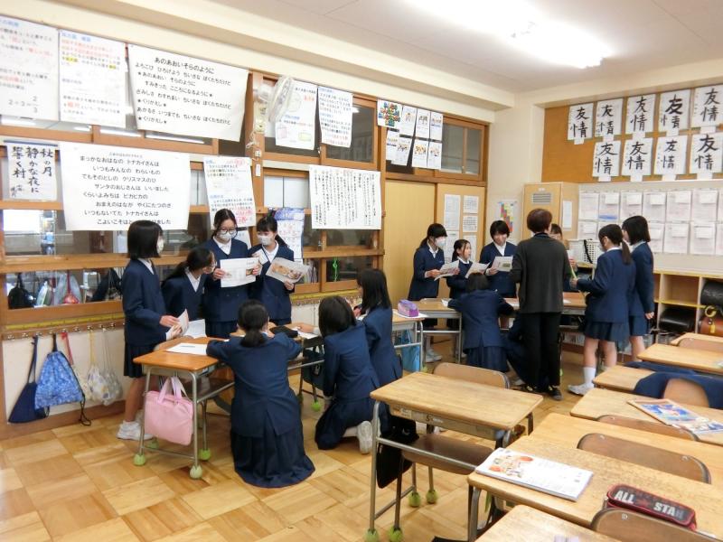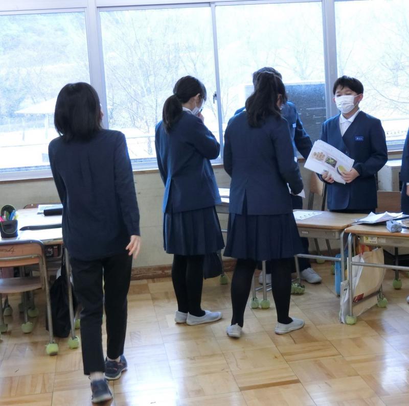 5年生のクラス内で練習し合った後、6年生を招待しました!うまく伝わるか緊張しているようでしたが、練習の成果を発揮し、上手に伝えることができました。いろんなグループをお客さんとして回りながら、5年生を温かく見守っている6年生の姿もすてきでした。