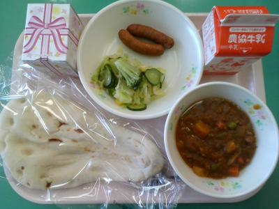 6年生は今日が小学校で食べる最後の給食となりました。今日はナンとキーマカレーが6年生からのリクエストです。