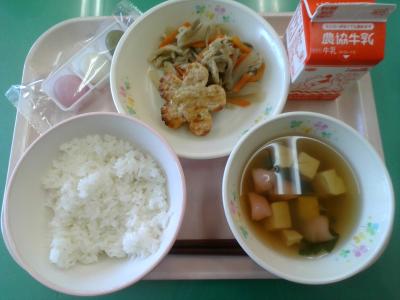 先週から6年生のリクエスト献立が始まっています。5日(水)の献立は、『メロンパン、ハニーマスタードチキン、フレンチサラダ、白玉スープ、いちご』でした。リクエスト献立は、すべてリクエストメニューなわけではなく、献立の中のどれかが6年生のリクエストです。この日の献立の中では、❝いちご❞がリクエストメニューでした。