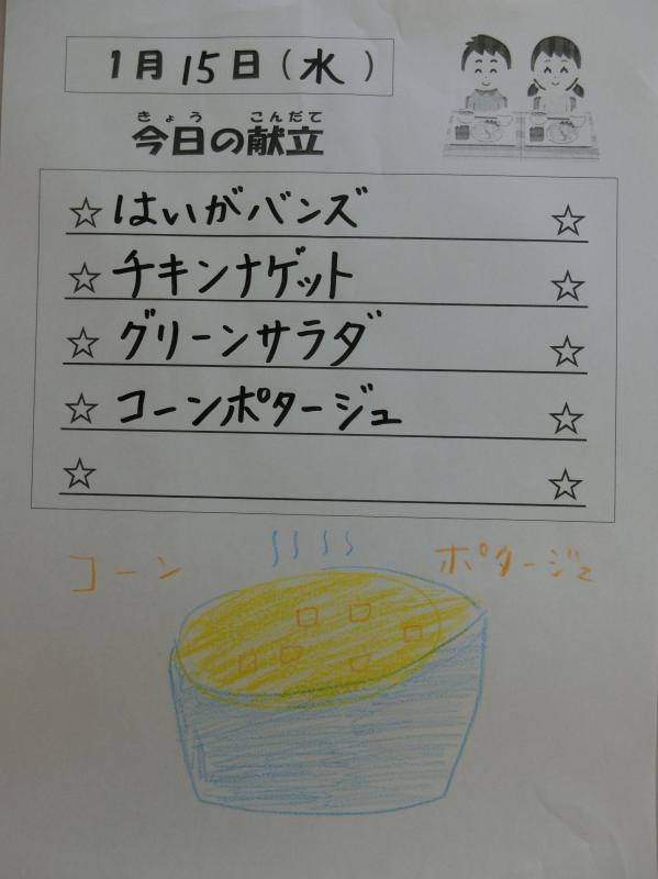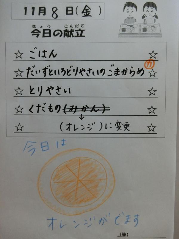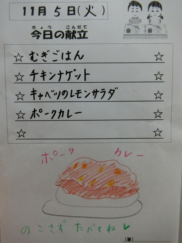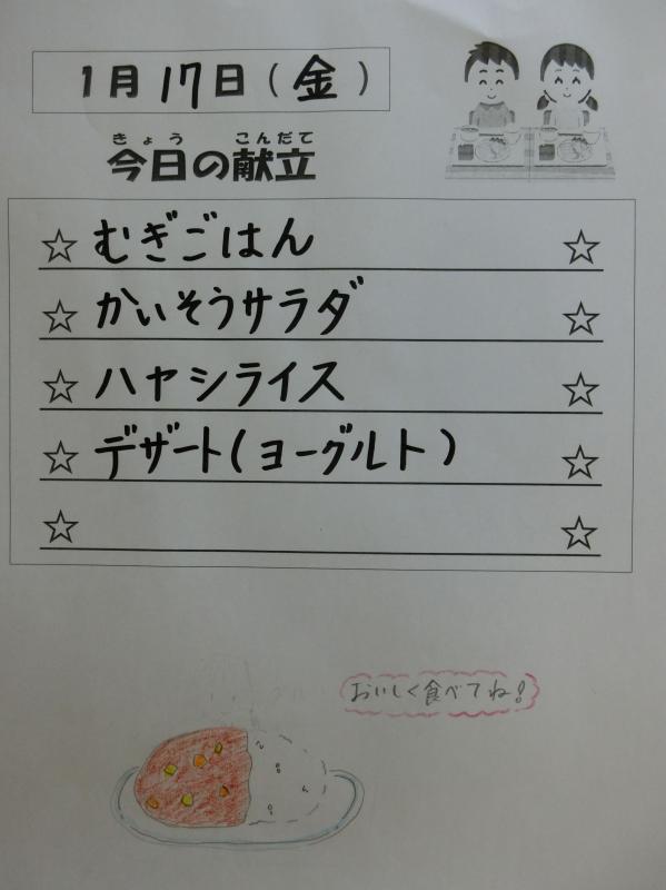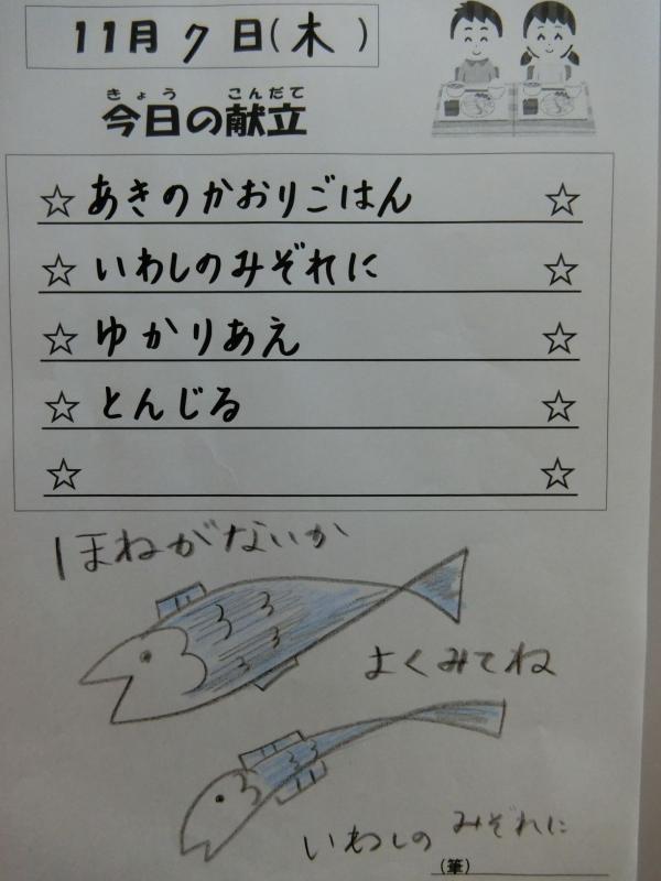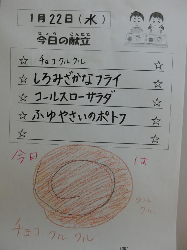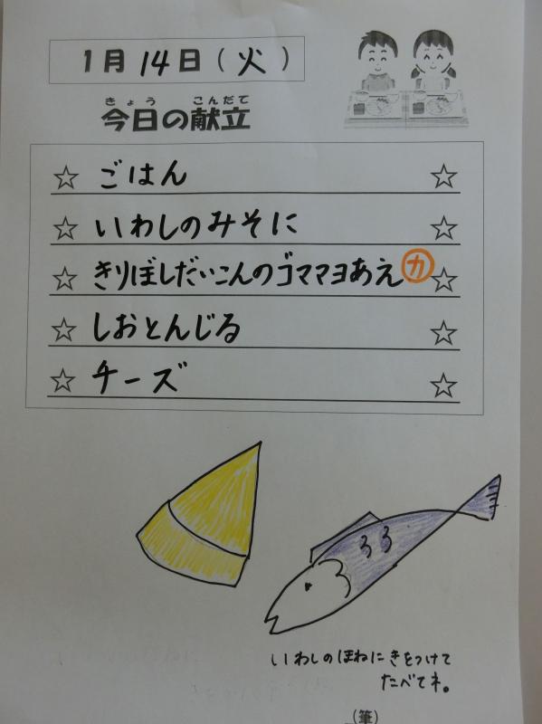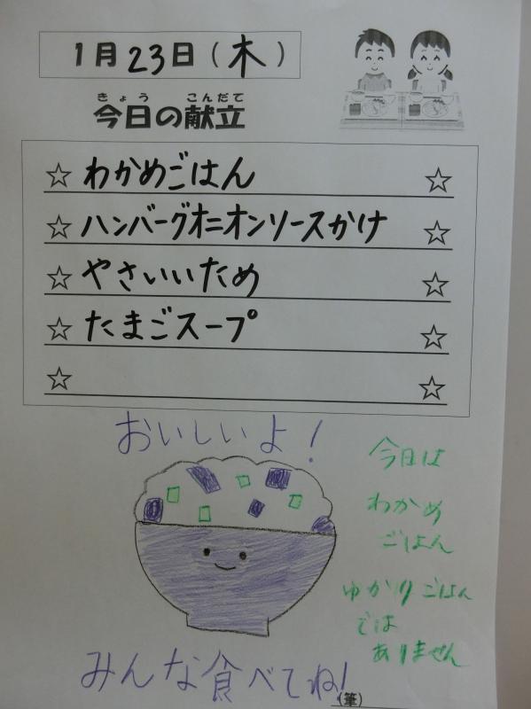 学校の玄関に,毎日給食のメニューが紹介されています。とてもかわいいイラストやコメントもついています!