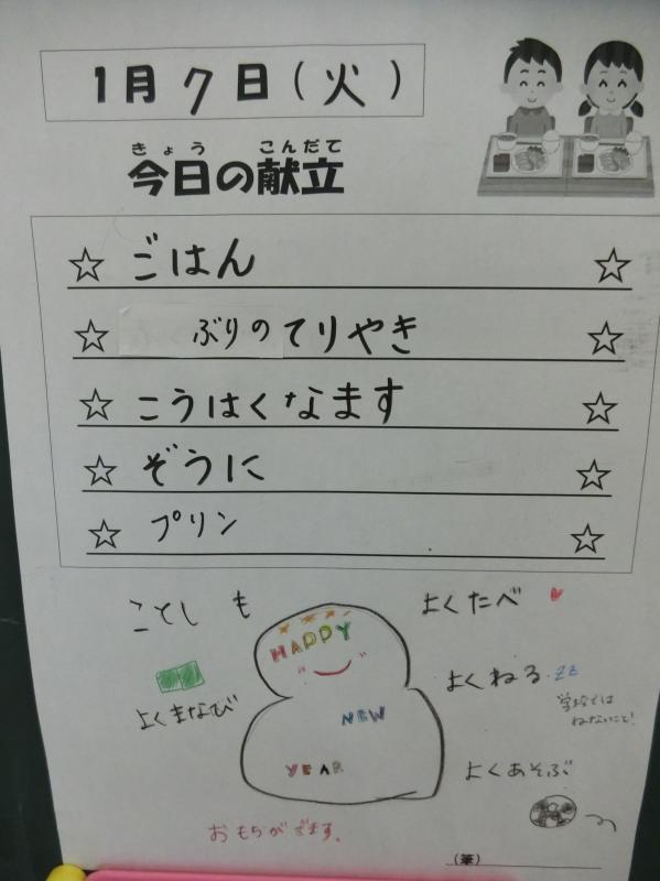 今週は、7日がお正月献立となっています。給食は、いつも季節を意識したメニューを作ってくださるので、嬉しいですね。