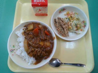 今日はカレーライスです。きびなご(ニシン科の小魚)のフライとも合いますね。