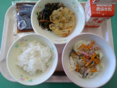 明日から夏休み。今日は冷たい、冷やしうどんです。