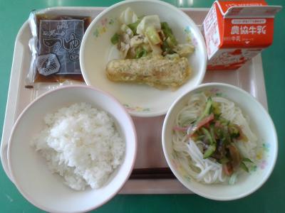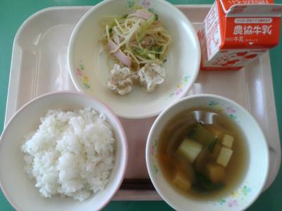 今週は七夕献立からスタート!ハンバーグ、とりにくスタミナ焼き、魚のカレー焼きなどパワーがつきそうなメニューや、ひやむぎ、ブロッコリーとツナのレモンマヨサラダ、きんじそうの酢の物などのさっぱりしたメニューなど、暑さで食欲減退気味の毎日を乗り切る献立を考えてくださっていますね。