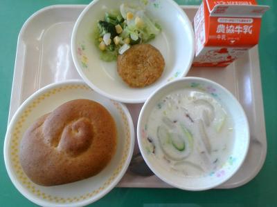 最近、いろんな種類のパンが給食に出ます!先週は安納いもロールが出ました。甘くておいしかったです。今週のパンはチーズクッペです!!