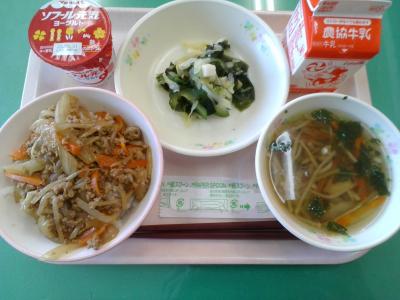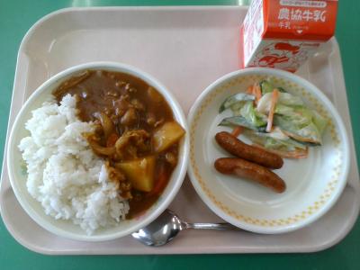 今日はみんな大好きカレーの日です。一年生は学校で食べる初めてのカレーですね。残さずに食べましょう。