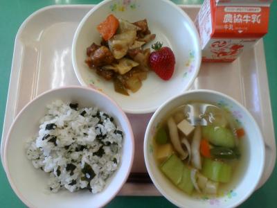 今月は食育月間です。そして、6月4日~10日は歯と口の健康週間です。健康には「よくかんで食べること」がとても大切なのだそうです。よくかむことは、あごの発達、栄養の吸収、食べ過ぎ防止、脳の活性化、虫歯予防等につながるとのこと。おいしい給食を、よーくかんで、味わっていただきましょう!!