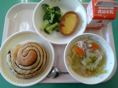 最近、いろんな種類のパンが給食に出ます!先週は安納いもロールが出ました。甘くておいしかったです。今週のパンはチーズクッペです!!