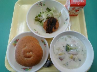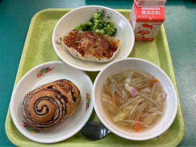 最近、いろんな種類のパンが給食に出ます!先週は安納いもロールが出ました。甘くておいしかったです。今週のパンはチーズクッペです!!