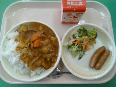 今日はみんな大好きカレーです。しょうがやにんにく,そしてリンゴやプルーンも入っています。