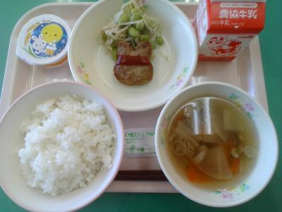 今週は七夕献立からスタート!ハンバーグ、とりにくスタミナ焼き、魚のカレー焼きなどパワーがつきそうなメニューや、ひやむぎ、ブロッコリーとツナのレモンマヨサラダ、きんじそうの酢の物などのさっぱりしたメニューなど、暑さで食欲減退気味の毎日を乗り切る献立を考えてくださっていますね。
