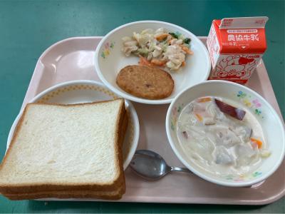今日は中秋の名月にちなんだ「お月見献立」です。見た目にも楽しい給食ですね。