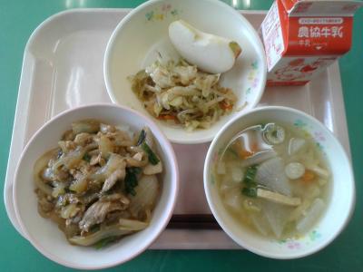 10月9日は「スポーツの日」です。今日はその日にちなんだ献立です。豚肉,ニラ,にんにくなどが入っていてスタミナが付きそうな丼です。