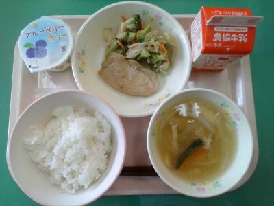 今日は「目の愛護デー」です。今日の給食の食材には目に良いものがたくさん使われています。ブロッコリーにはルテイン、ブルーベリーにはアントシアニン、かぼちゃにはビタミンA、豚肉にはビタミンB1など、目に良い栄養がたくさん含まれています。