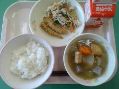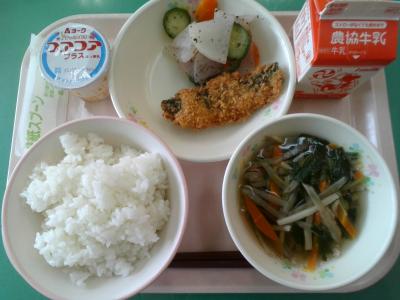 いりこはかたくちいわしを干したものです。煮干しと同じですね。今日はそのフライです。歯ごたえがよくカルシウムがたっぷり、歯にとてもいいですね。
