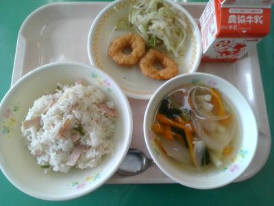 6月に入り、じめじめ、むしむしした日が多くなってきました。過ごしにくい季節ですが、沢山食べて元気に活動できるといいですね。今週はみんなのだーいすきな「揚げパン」があります!楽しみですね。