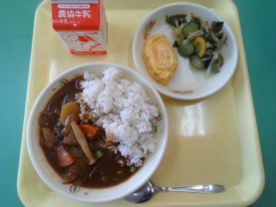今週は七夕献立からスタート!ハンバーグ、とりにくスタミナ焼き、魚のカレー焼きなどパワーがつきそうなメニューや、ひやむぎ、ブロッコリーとツナのレモンマヨサラダ、きんじそうの酢の物などのさっぱりしたメニューなど、暑さで食欲減退気味の毎日を乗り切る献立を考えてくださっていますね。